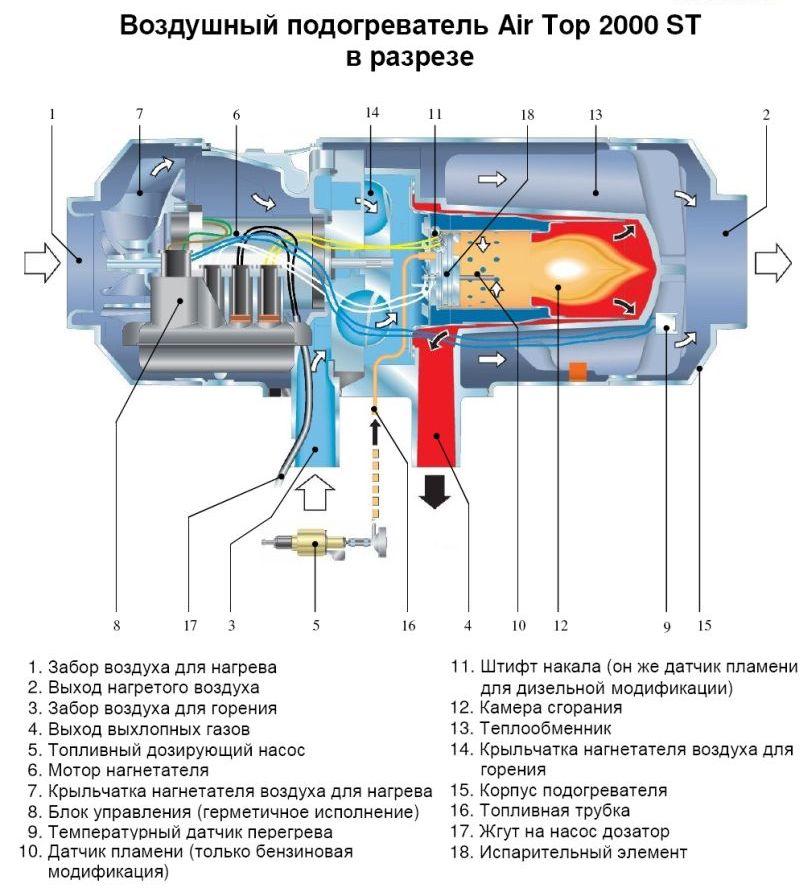 Главные преимущества Air Top 2000 ST — новый, более долговечный и легкий мотор. Кроме того, в качестве крыльчатки для нагнетателя воздуха используется специальная прокладка-изолятор, которая облегчает проход воздуха и предотвращает запыление.