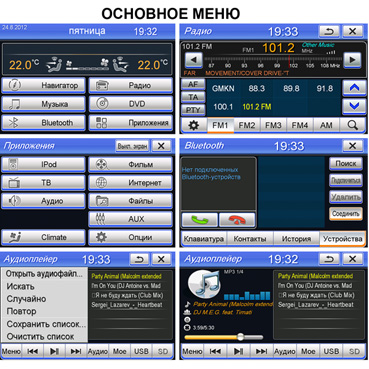 Прибор читает множество видео-, аудиоформатов и даже текстовые файлы: MP3, WMA, WAVE, MPEG1/2, MPEG4, WMV, JPEG, GIF, PNG, BMP, MS-Word, Excel, PowerPoint, Adobe PDF, *.txt. Для радио- и телелюбителей есть FM и аналоговый тюнеры. Кстати, музыку можно прослушивать, не прекращая при этом работу навигации.