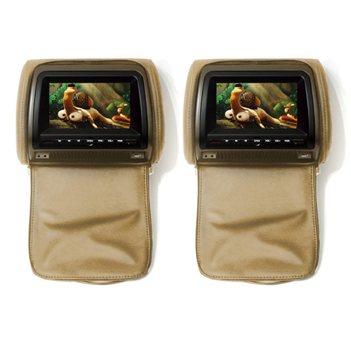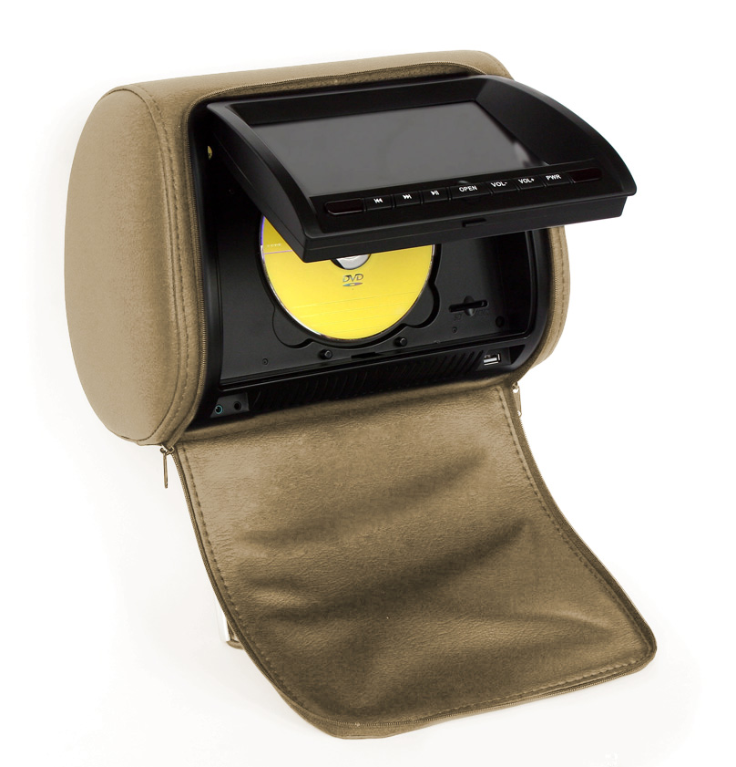 Комплект подголовников с LCD монитором 7" ERGO ER700H состоит из двух подголовников бежевого цвета, один из которых оснащен встроенным DVD-проигрывателем. Изюминкой данной модели является то, что подголовники имеют специальные чехлы с застежкой-молнией. Таким образом, когда чехол застегнут, подголовник выглядит как обычный и не привлекает постороннего внимания.