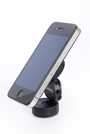 Держатель очень компактный, его совсем не видно за прикрепленным устройством.