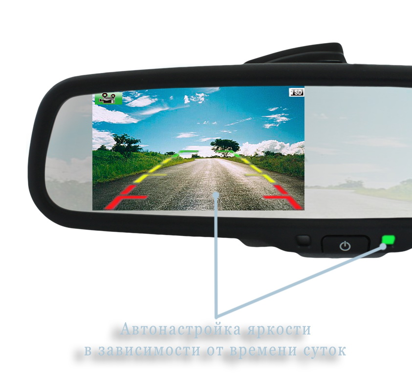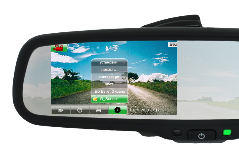 Монитор. В зеркало DVR-MIRROR встроен не только видеорегистратор, но и компактный дисплей высокой чёткости. Монитор позволяет не только наблюдать за обстановкой около автомобиля (особенно при парковке), но и просматривать сделанные записи. Меню навигации простое и интуитивно понятное.