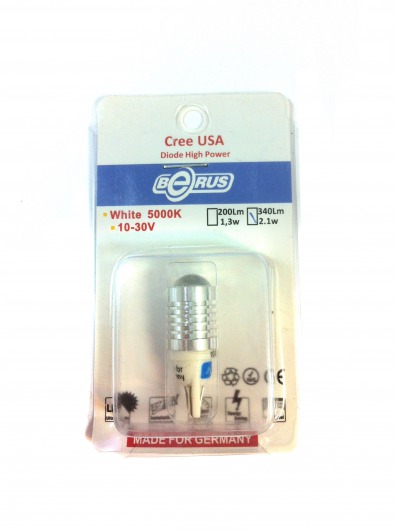 Светодиодная лампа T10 2.1W предназначена для установки в задние габариты. Она намного ярче обычных галогеновых ламп, отлично освещает дорогу даже в самую непроглядную темноту и сильный ливень. Цвет свечения со временем не изменяется. Служит такая лампа очень долго, при этом потребляет незначительное количество энергии.