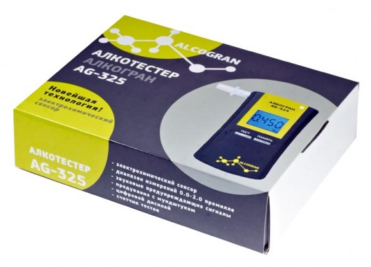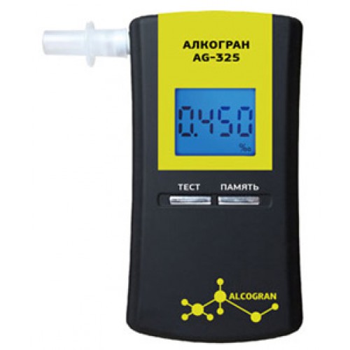 Алкометр Алкогран AG-325 — это персональный алкотестер с электрохимическим сенсором, который определяет уровень алкоголя в крови по выдыхаемому воздуху. С этим прибором вы точно будете знать, можно ли садиться за руль или лучше вызвать такси. Продувание производится через мундштук.
