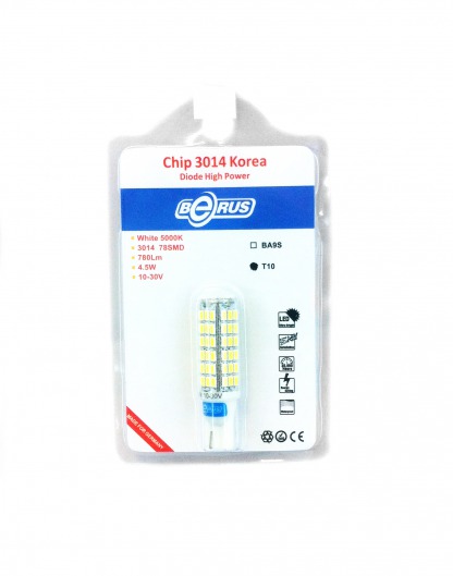 Светодиодная лампа T10 4.5W предназначена для установки в задние габариты. Она намного ярче обычных галогеновых ламп, отлично освещает дорогу даже ночью и в дождливую, туманную погоду. Цвет свечения со временем не изменяется. Служит такая лампа очень долго, при этом потребляет незначительное количество энергии.