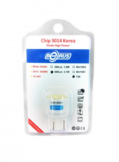 Светодиодная лампа T20 3.1W предназначена для установки в противотуманные фары и указатели поворотов. Она намного ярче обычных галогеновых ламп, отлично освещает дорогу даже в самую непроглядную темноту и сильный ливень. Цвет свечения со временем не изменяется. Служит такая лампа очень долго, при этом потребляет незначительное количество энергии.