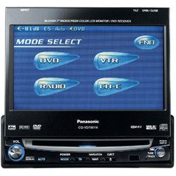 DVD-ресивер с монитором Panasonic CQ-VD7001N имеет высокую выходную мощность, моторизированный подъем экрана и выход на сабвуфер, что позволит обеспечить вам отличное качество звука. Модель также имеет множество различных режимов воспроизведения и настроек.