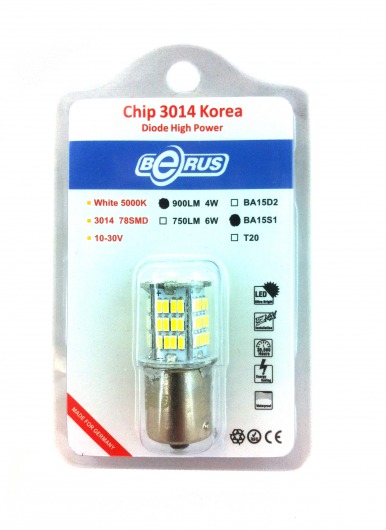 Светодиодная лампа BA15S1 4W предназначена для установки в задние габариты. Она намного ярче обычных галогеновых ламп, отлично освещает дорогу даже ночью и в дождливую, туманную погоду. Цвет свечения со временем не изменяется. Служит такая лампа очень долго, при этом потребляет незначительное количество энергии.