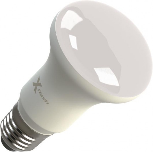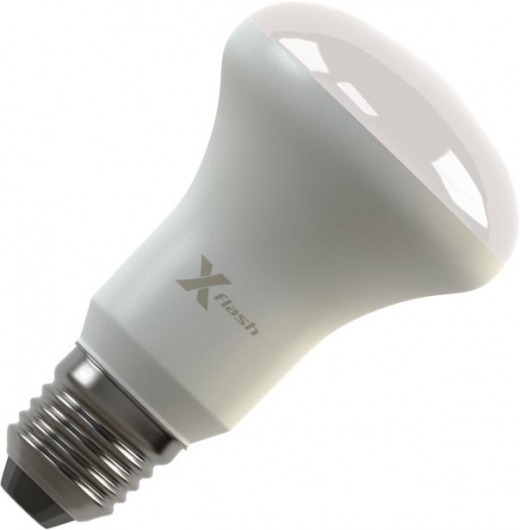 Светодиодная лампа X-Flash FUNGUS E27 8W выполнена в форме лампы-рефлектора с матовой колбой, корпус изготовлен из теплорассеивающей пластмассы, что значительно повышает ее безопасность. По форме, цоколю и размерам led лампа соответствует аналогичным люминесцентным лампам и лампам накаливания. Она имеет алюминиевый радиатор, который эффективно снижает температуру внутри лампы. Данная модель рассчитана на напряжение 220 В. Мощность диодной лампы X-Flash — 8 Вт., яркость — 650 Лм, а температура свечения  3000 K (это желтый свет).