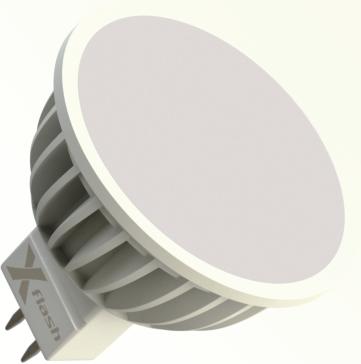 Светодиодная лампа X-Flash Spotlight GU 5.3 4W – это отличная альтернатива галогеновой лампе с цоколем MR16. Потребляемая мощность — 4 Вт. Яркость — 300 Лм, а температура свечения  3000 K (это желтый свет). Рабочее напряжение — 220V. Высокий индекс цветопередачи обеспечивает четкое и контрастное восприятие. К тому же, такая лампочка не содержит ртутных паров в колбе (в отличие от люминесцентных), а значит, при повреждении не представляет опасности для здоровья.