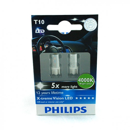 Вопросы и отзывы про Светодиодные лампы W5W (T10) Philips X-Treme Vision 4000K (теплый белый свет)