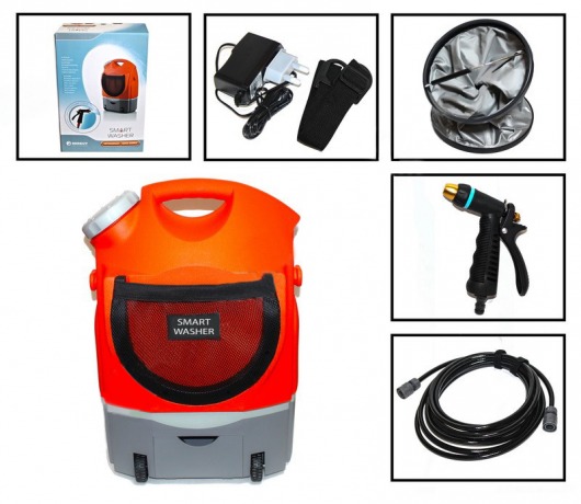 ень удобен сетчатый карман на боку минимойки для хранения шланга и распылителя. Благодаря ему вам не придется искать, куда же пропала та или иная часть от мойки – всё будет на месте и под рукой. Также устройство оснащено плечным ремнем и съемной емкостью для воды, благодаря чему вы можете комфортно переносить минимойку куда необходимо.