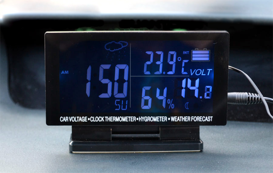 Питание термометра осуществляется от батарейки. Подсветка имеет приятный синий цвет. Подсветка прибора работает от прикуривателя. Прибор имеет довольно компактные размеры: длинна 126 мм; высота 65 мм; ширина 20 мм, - и не будет перегружать пространство в автомобиле.