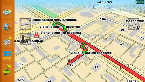 Несколькими касаниями широкого сенсорного экрана настраивается приложение BeOnRoad. Программа может работать в режиме пешеходной навигации с векторными и растровыми картами, подготовленными специальным образом.