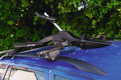 Облегченная установка. Велобагажник устроен так, что вам не нужно будет придерживать велосипед, прикрепляя его на крышу автомобиля. Установите велосипед в специальный профиль, и он сам прочно зафиксирует колеса в вертикальном положении. Согласитесь, очень удобно, особенно если рядом нет помощников.
