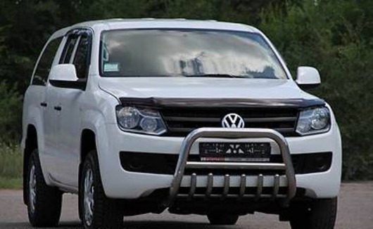 Дефлектор капота для  Volkswagen Amarok — это щиток из орг.стекла темного цвета, который крепится на переднюю часть капота. Благодаря тому, что дефлектор разработан специально для  Volkswagen Amarok от 2010 г.в., устанавливается он легко и быстро, при этом сверлить кузов вам не нужно. По форме же накладка полностью повторяет контуры капота. Данная модель прочна и долговечна: она надежно крепится, не боится коррозии, экстремальных температур и серьезных перегрузок.