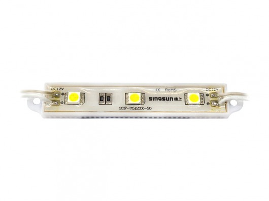 Линейный светодиодный модуль PL 5050-3 IP65 3240Lm — это 3 диода SMD 5050 и резисторы с рабочим напряжением 12V, которые находятся в пластиковом корпусе. Яркость 1 диода составляет 54Lm, а всей упаковки — 3240Lm, что дает вам очень яркое и насыщенное свечение. Корпус залит двухкомпонентным компаундом. Поэтому вы можете использовать светодиодный модуль led в условиях повышенной влажности и резкого перепада внешней температуры от -30 до +50 градусов.