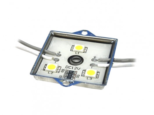 Квадратный светодиодный модуль MS 5050-3 IP65 3240Lm — это 3 диода SMD 5050 и резисторы с рабочим напряжением 12V, которые находятся в металлическом корпусе. Яркость 1 диода составляет 54Lm, а всей упаковки — 3240Lm, что дает вам очень яркое и насыщенное свечение. Корпус залит двухкомпонентным компаундом. Поэтому вы можете использовать светодиодный модуль led в условиях повышенной влажности и резкого перепада внешней температуры от -30 до +50 градусов.