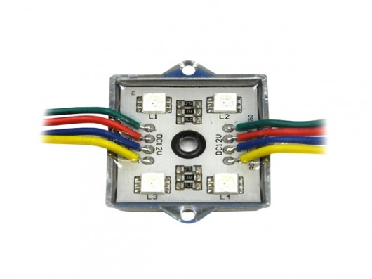 Квадратный светодиодный модуль MS 5050-4 IP65 RGB — это 4 диода SMD 5050 цвета RGB и резисторы с рабочим напряжением 12V, которые находятся в металлическом корпусе. Вы можете управлять модулем и создавать яркие световые эффекты с помощью контроллера RGB. Корпус залит двухкомпонентным компаундом. Поэтому вы можете использовать светодиодный модуль led в условиях повышенной влажности и резкого перепада внешней температуры от -30 до +50 градусов.
