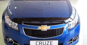 Дефлектор капота для Chevrolet Cruze (седан) — это щиток из орг.стекла темного цвета, который крепится на переднюю часть капота. Благодаря тому, что дефлектор разработан специально для Chevrolet Cruze от 2009 г.в., устанавливается он легко и быстро, при этом сверлить кузов вам не нужно. По форме же накладка полностью повторяет контуры капота. Данная модель прочна и долговечна: она надежно крепится, не боится коррозии, экстремальных температур и серьезных перегрузок.