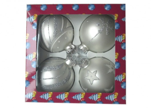 В набор PeneriGifts входят 4 стеклянных елочных шара диаметром 8 см. Серебристые матовые шарики с разноплановыми узорами смотрятся добротно, нарядно и гармонично. Двух-трех таких наборов будет вполне достаточно, чтобы целиком нарядить комнатную елку. А стоит ли говорить, что набор елочных шариков будет отличным новогодним подарком кому-нибудь из ваших родных и близких.