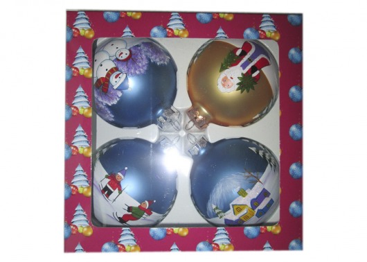 Набор стеклянных елочных шаров PeneriGifts (с цветными рисунками, 4 шт.)