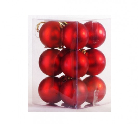В набор PeneriGifts входят 12 красных елочных шаров с матовой поверхностью диаметром 5 см. Двух-трех таких наборов будет вполне достаточно, чтобы нарядить комнатную елку.
