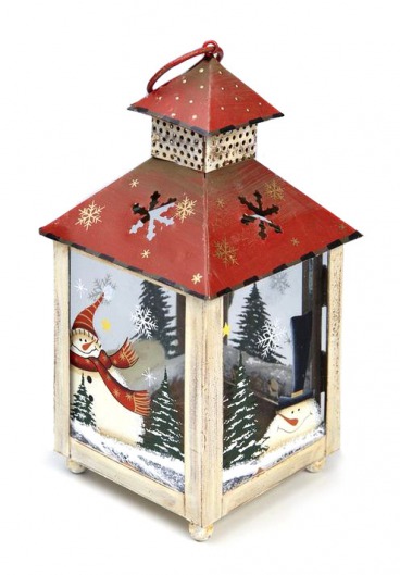 Фонарик рождественский со снеговиками (10 х 10 х 19 см)