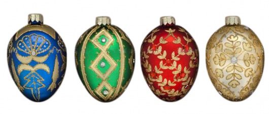 Набор новогодних игрушек "Золотой век"  послужит замечательным украшением для елки.  Игрушка имеет вытянутую форму и похожа на яйцо, ее размер - 4х6 см. Она красиво расписана, использована золотая и серебряная обсыпка, стразы.