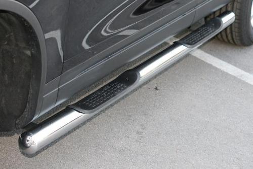 Боковые пороги-подножки сделаны специально для автомобилей Volkswagen Touareg от 2010 г.в., поэтому устанавливаются достаточно просто и без повреждений корпуса. Помимо этого, стальные пороги-трубы с проступями для Фольксваген Туарег смотрятся очень стильно и эффектно. Они добавят вашему авто еще больше солидности и внушительности.