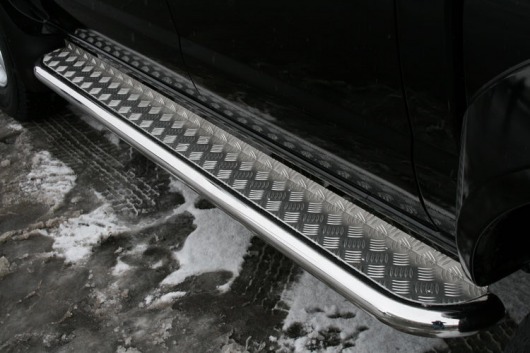 Пороги на Nissan NP300 – это боковые подножки из нержавеющей стали диаметром 60 мм, которые позволяют более комфортно входить и выходить из салона автомобиля. Подножки Nissan NP300 очень прочные, надежные и долговечные: они не боятся коррозии, сколов и царапин и выдерживают большие нагрузки.