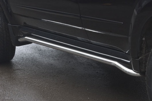 Защита для порогов Great Wall Hover – это накладки на пороги из нержавеющей стали в форме трубы диаметром 42 мм. Главное их назначение – защита подножек авто от износа.