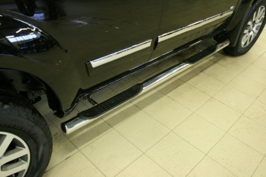 Боковые пороги-подножки сделаны специально для автомобилей Nissan Pathfinder от 2010 г.в., поэтому устанавливаются достаточно просто и без повреждений корпуса. Помимо этого, стальные пороги-трубы с проступями для Ниссан Патфайндер смотрятся очень стильно и эффектно. Они добавят вашему авто еще больше солидности и внушительности.