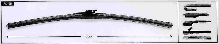 Trico Flex FX430 — это бескаркасная щетка стеклоочистителя, которой вы можете пользоваться как летом, так и зимой. Длина дворника Trico FX430 составляет 43 см. Стеклоочиститель Trico FX430 оснащен мультиадаптером и поэтому легко устанавливается на автомобиль любой марки со следующим креплением: