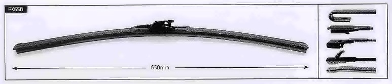 Trico Flex FX650 — это бескаркасная щетка стеклоочистителя, которой вы можете пользоваться как летом, так и зимой. Длина дворника Trico FX650 составляет 65 см. Стеклоочиститель Trico FX650 оснащен мультиадаптером и поэтому легко устанавливается на автомобиль любой марки со следующим креплением:
