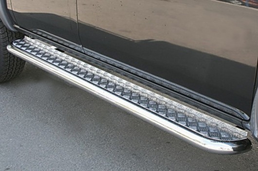 Пороги на Mercedes-Benz M-Class – это боковые подножки из нержавеющей стали диаметром 60 мм, которые позволяют более комфортно входить и выходить из салона автомобиля. Подножки Mercedes M-Class очень прочные, надежные и долговечные: они не боятся коррозии, сколов и царапин и выдерживают большие нагрузки.