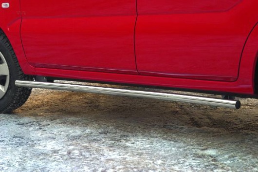 Пороги на Suzuki Ignis – это боковые подножки из нержавеющей стали диаметром 60 мм, которые позволяют более комфортно входить и выходить из салона автомобиля. Подножки Suzuki Ignis очень прочные, надежные и долговечные: они не боятся коррозии, сколов и царапин и выдерживают большие нагрузки.