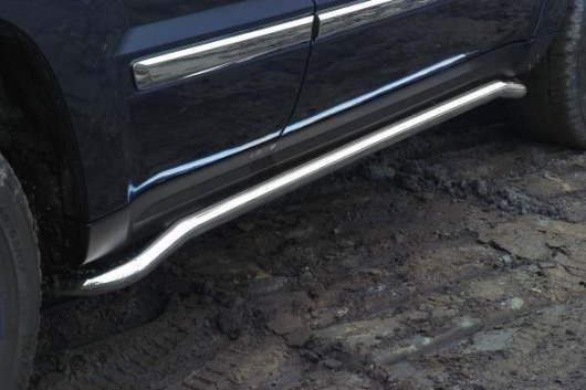 Защита для порогов Jeep Grand Cherokee – это накладки на пороги из нержавеющей стали в форме трубы диаметром 42 мм. Главное их назначение – защита подножек авто от износа.