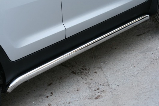Пороги на Kia Sportage – это боковые подножки из нержавеющей стали диаметром 60 мм, которые позволяют более комфортно входить и выходить из салона автомобиля. Подножки Kia Sportage очень прочные, надежные и долговечные: они не боятся коррозии, сколов и царапин и выдерживают большие нагрузки.