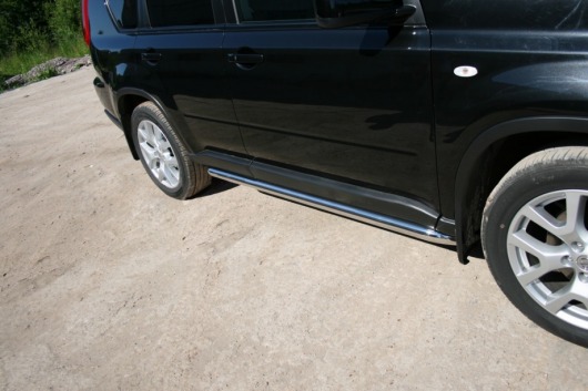 Пороги на Nissan X-Trail – это боковые подножки из нержавеющей стали диаметром 60 мм, которые позволяют более комфортно входить и выходить из салона автомобиля. Подножки Nissan X-Trail очень прочные, надежные и долговечные: они не боятся коррозии, сколов и царапин и выдерживают большие нагрузки.