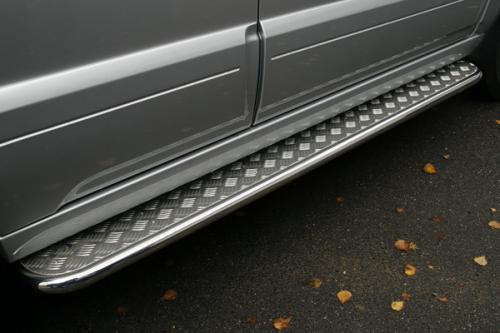 Боковые пороги-подножки сделаны специально для автомобилей Kia Sorento от 2006 г.в., поэтому устанавливаются достаточно просто и без повреждений корпуса. Помимо этого, стальные пороги с листом для Киа Соренто смотрятся очень стильно и эффектно. Они добавят вашему авто еще больше солидности и внушительности.