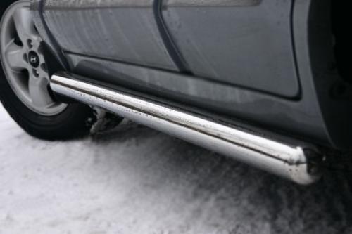 Пороги на Hyundai Santa Fe – это боковые подножки из нержавеющей стали диаметром 76 мм, которые позволяют более комфортно входить и выходить из салона автомобиля. Подножки Hyundai Santa Fe очень прочные, надежные и долговечные: они не боятся коррозии, сколов и царапин и выдерживают большие нагрузки.