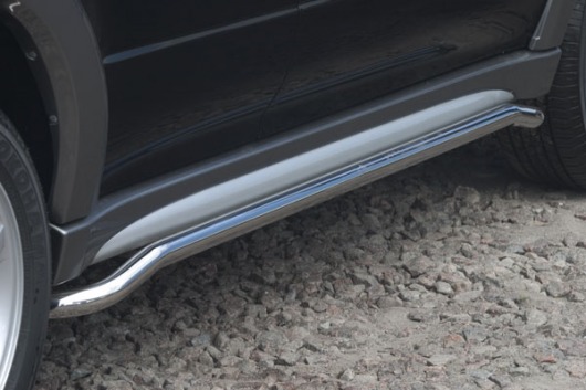 Защита для порогов Mitsubishi Outlander – это накладки на пороги из нержавеющей стали в форме трубы диаметром 42 мм. Главное их назначение – защита подножек авто от износа.