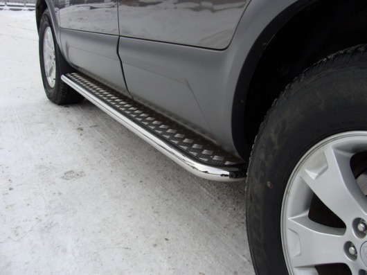 Пороги на Kia Mohave – это боковые подножки из нержавеющей стали диаметром 60 мм, которые позволяют более комфортно входить и выходить из салона автомобиля. Подножки Kia Mohave очень прочные, надежные и долговечные: они не боятся коррозии, сколов и царапин и выдерживают большие нагрузки.