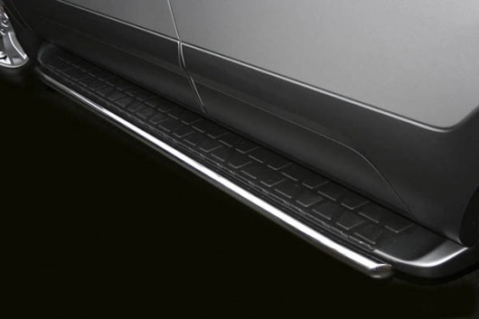 Защита для порогов Kia Mohave – это накладки на пороги из нержавеющей стали в форме трубы диаметром 42 мм. Главное их назначение – защита подножек авто от износа.