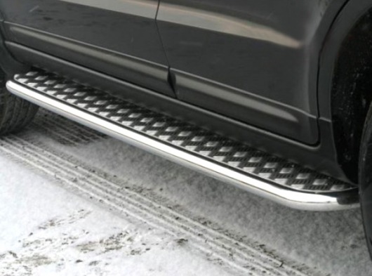 Пороги на Hyundai Santa Fe – это боковые подножки из нержавеющей стали диаметром 60 мм, которые позволяют более комфортно входить и выходить из салона автомобиля. Подножки Hyundai Santa Fe очень прочные, надежные и долговечные: они не боятся коррозии, сколов и царапин и выдерживают большие нагрузки.