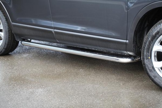 Боковые пороги-подножки сделаны специально для автомобилей Mazda CX-9 от 2013 г.в., поэтому устанавливаются достаточно просто и без повреждений корпуса. Помимо этого, стальные пороги-трубы для Мазда СХ-9 смотрятся очень стильно и эффектно. Они добавят вашему авто еще больше солидности и внушительности.