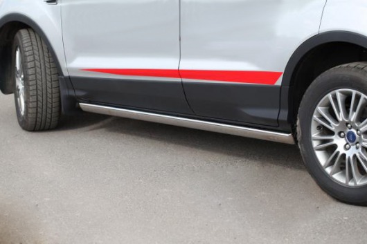 Боковые пороги-подножки сделаны специально для автомобилей Ford Kuga от 2013 г.в., поэтому устанавливаются достаточно просто и без повреждений корпуса. Помимо этого, овальные пороги-трубы для Форд Куга смотрятся очень стильно и эффектно. Они добавят вашему авто еще больше солидности и внушительности.