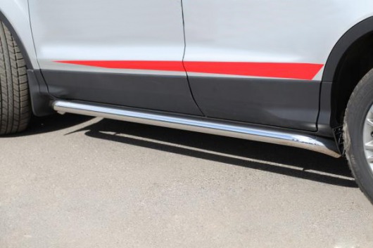 Пороги на Ford Kuga – это боковые подножки из нержавеющей стали диаметром 60 мм, которые позволяют более комфортно входить и выходить из салона автомобиля. Подножки Ford Kuga очень прочные, надежные и долговечные: они не боятся коррозии, сколов и царапин и выдерживают большие нагрузки.