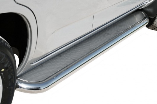 Пороги на Toyota RAV4 LWB – это боковые подножки из нержавеющей стали диаметром 60 мм, которые позволяют более комфортно входить и выходить из салона автомобиля. Подножки Toyota RAV4 LWB очень прочные, надежные и долговечные: они не боятся коррозии, сколов и царапин и выдерживают большие нагрузки.