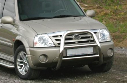 Передняя решетка Suzuki Grand Vitara (кенгурятник) – это защитная дуга на бампер из нержавеющей стали диаметром 76 мм.
